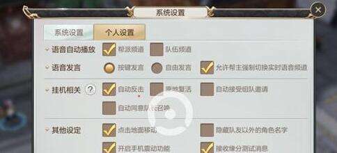 选择挂机相关;进行自动反击、原地复活、自动接受组队邀请、自动同意队长召唤等设定。