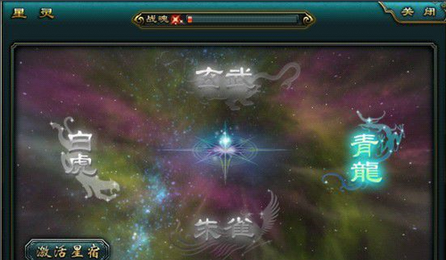 点击界面右下方的星灵按钮。 游戏中一共有四种星灵设定分别为“青龙”、“白虎”、“朱雀”、“玄武”。 战魂足够时,点击下边的激活按钮即可点亮此星灵提升战力。