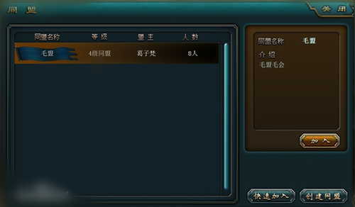 选中同盟,即可点击申请加入。或者点击快速加入,将会自动随机加入到一个开放自动入会的同盟。