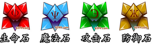 一共有四种宝石:生命石,魔法石,攻击石,防御石。