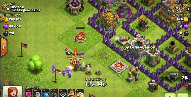 下面进入实战环节,蛮王就在墙外面,我果断下法师杀死,这样就增加了容错率与胜率。接着,用三指下野猪,从七点至十点方向下兵,三瓶治疗分别下在有法师塔,有巨型炸弹的地方。不要随意下。再下联盟军,我这里也是被双炸,炸到了,没有想到那里有双炸。不过还是赢了,可以看出野猪流的容错率很高。等野猪把防御建筑都推平了,下亡灵收尾,完美三星!我这里再强调几点,野猪流不要随便用,费用太高了1000黑,我自己都心疼。如果土豪我也不阻止,注意是让野猪分散,及时给治疗,能杀蛮王尽量杀死。注意收尾。
