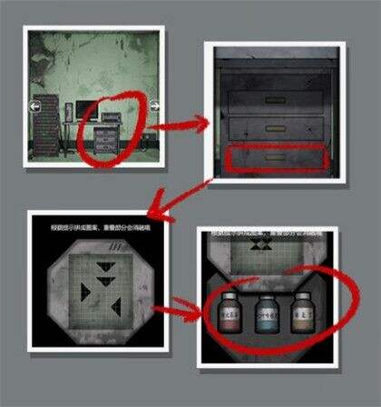 11、根据病例单上面的符号,打开第三格抽屉,通关上面的小游戏,获得三瓶药丸。