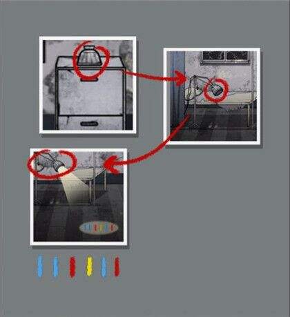 2、去右边的诊断室,点下桌子下面的柜子,用电胶布把电线粘好。
