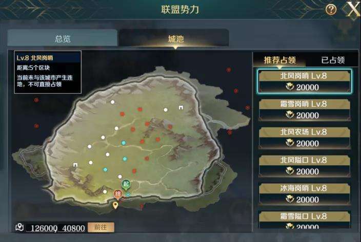 在城池页面中,可以看到大地图上已经占领和推荐占领的城池,方便为联盟的发展制定路线和对策 。