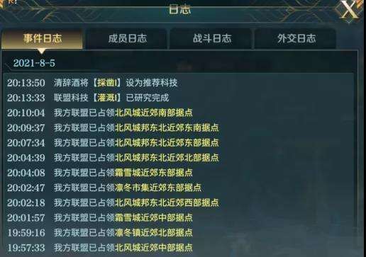可用于查看联盟事件,成员变动,战事和外交记录。