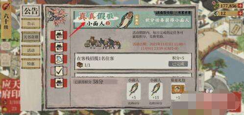 3、当玩家完成任务累计获得60积分时,即可获得5个小面人。