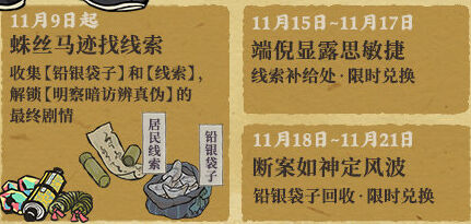 首先解锁这个活动剧情内容,玩家需要收集线索和铅银袋子。