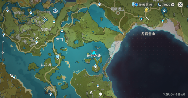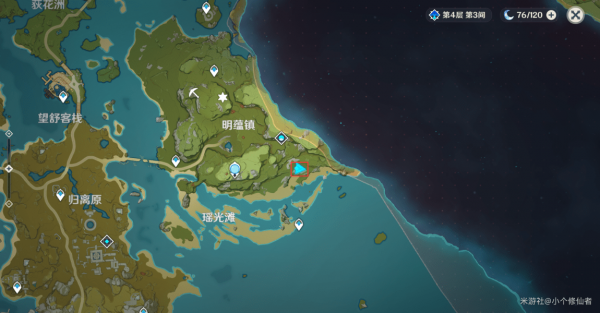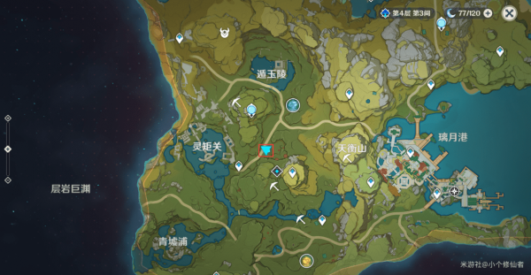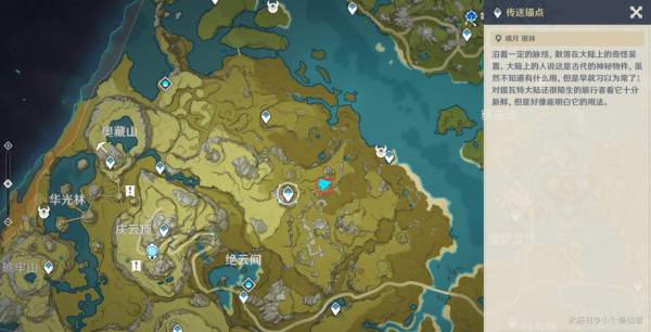 刷新点3:传送锚点传送下来后往地图右侧走即可,在山下,有小怪在一边。