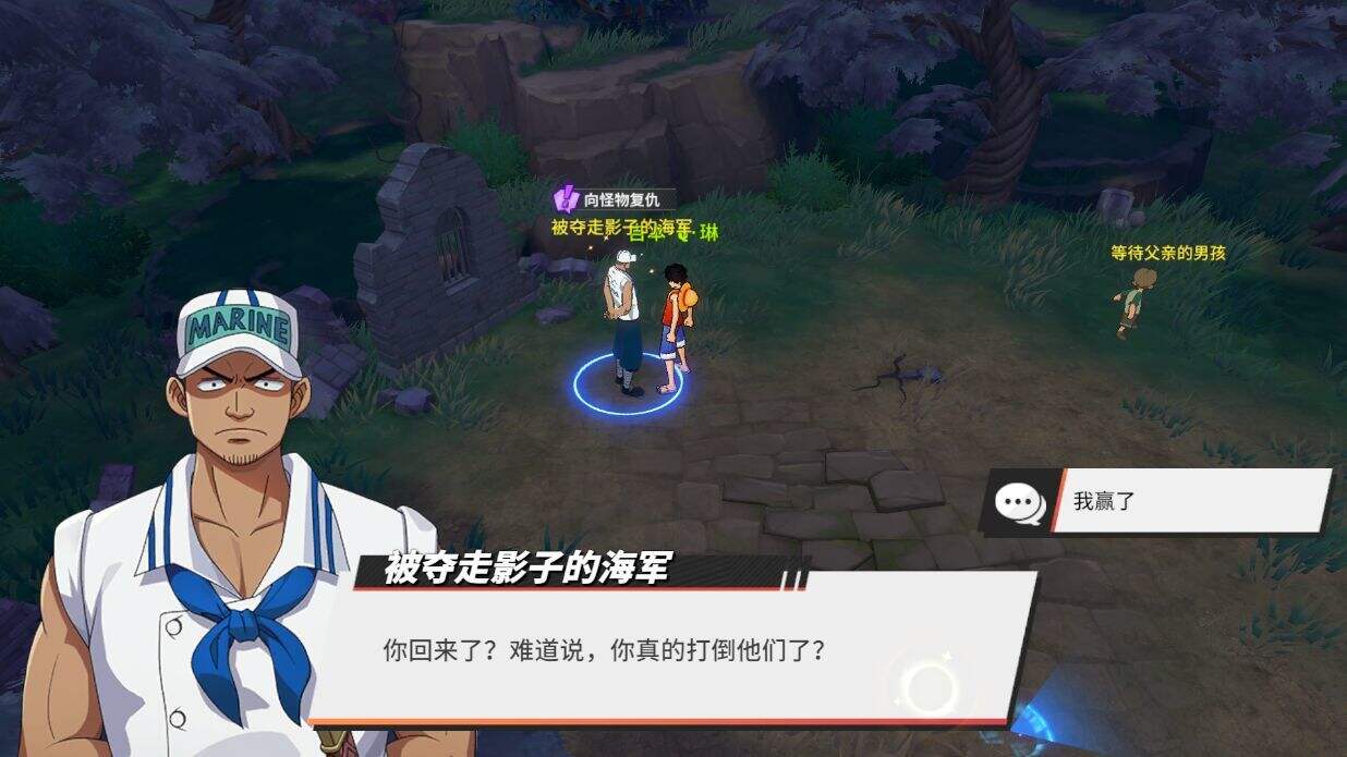 战斗胜利后,回去找被夺走影子的海军交差,任务完成。