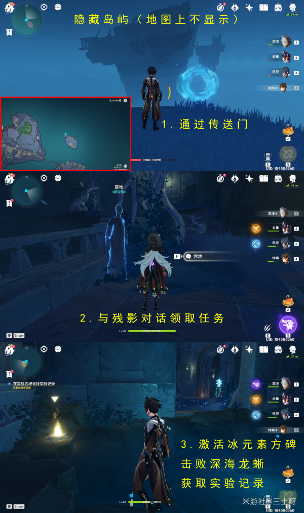 前往下图的地方,找到隐藏岛屿,与残影对话领取任务「三色档案」,然后去寻找试验记录