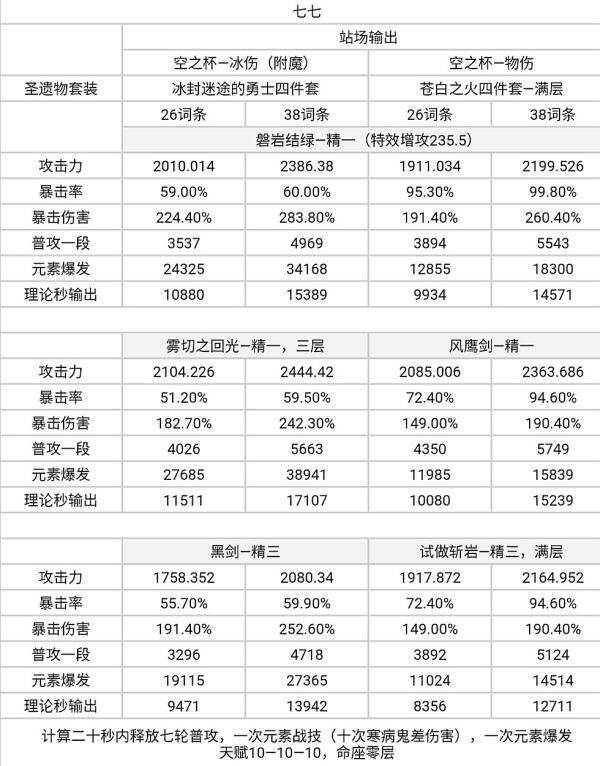 —磐岩结绿对比试做斩岩输出高约15%—19%,词条越高差距越小,计算中未考虑试做斩岩叠层影响,实战中差距可能会增大。