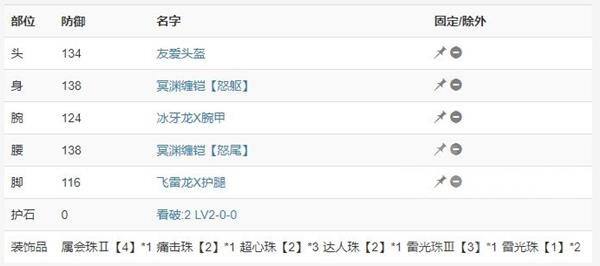 如果按上面2套配装的话,我比较倾向于火刀带熔翁配狂龙转祸套,雷刀带雷神龙配连击套,冰刀带钢龙2种套装都可以,水刀如果选泥翁就带狂龙转祸,选公会就带连击套。