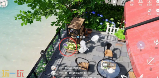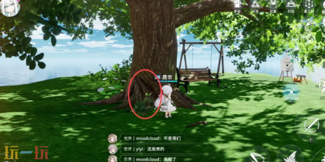5、继续向上走,可以看见大树、画板、秋千,在这些设施周围总共有两处虫类刷新点和一处木材类刷新点。