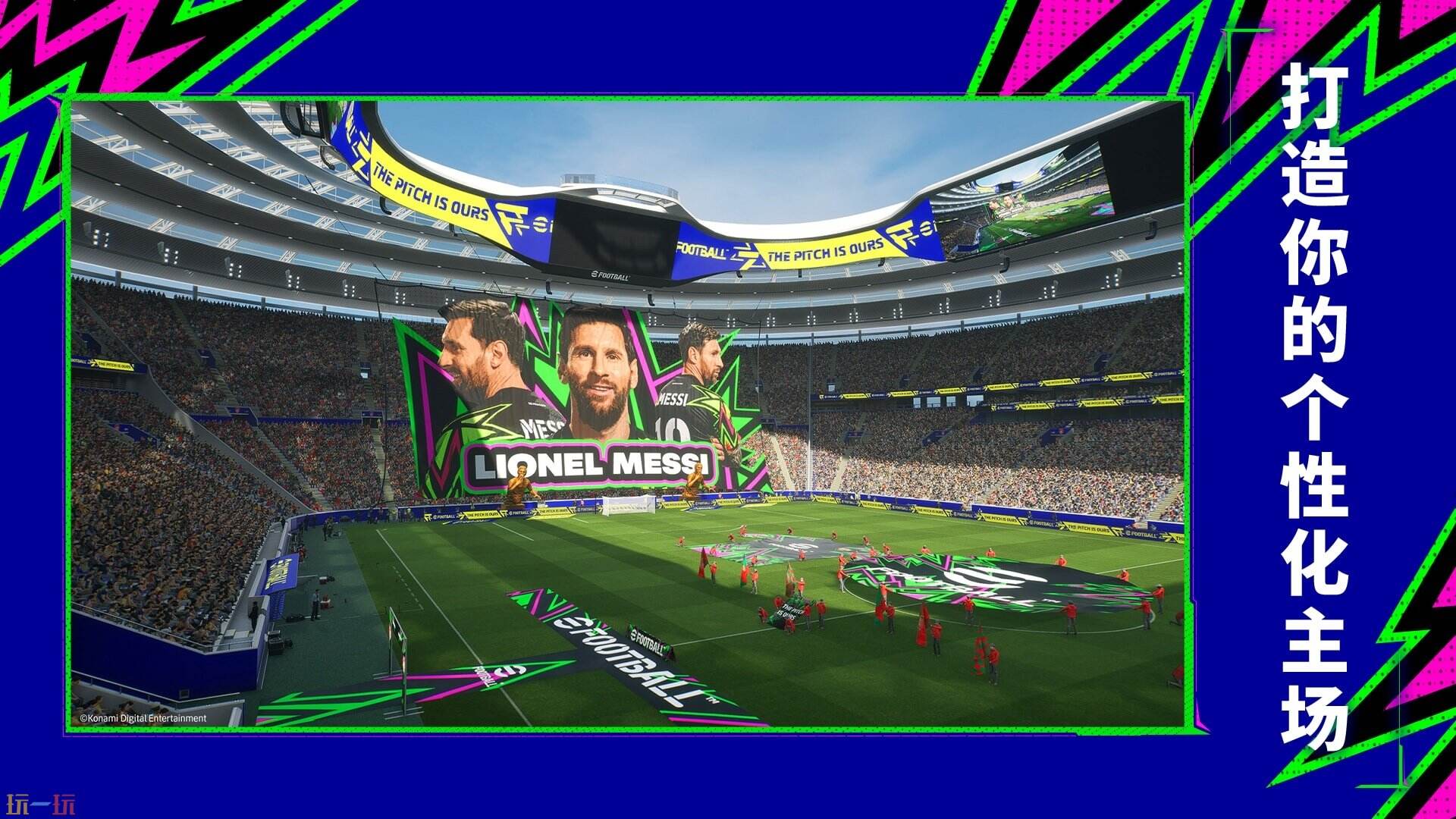 实况球场将新增自定义功能,快来打造独属于你的独特主场吧!新版本中,你将能按自己的喜好自由组合多种元素,包括球场颜色、草坪图案、巨幅海报、巨型道具等。此外,你还可以为球队设置最能体现你个性的三套球衣,向所有对手展示你的风范!